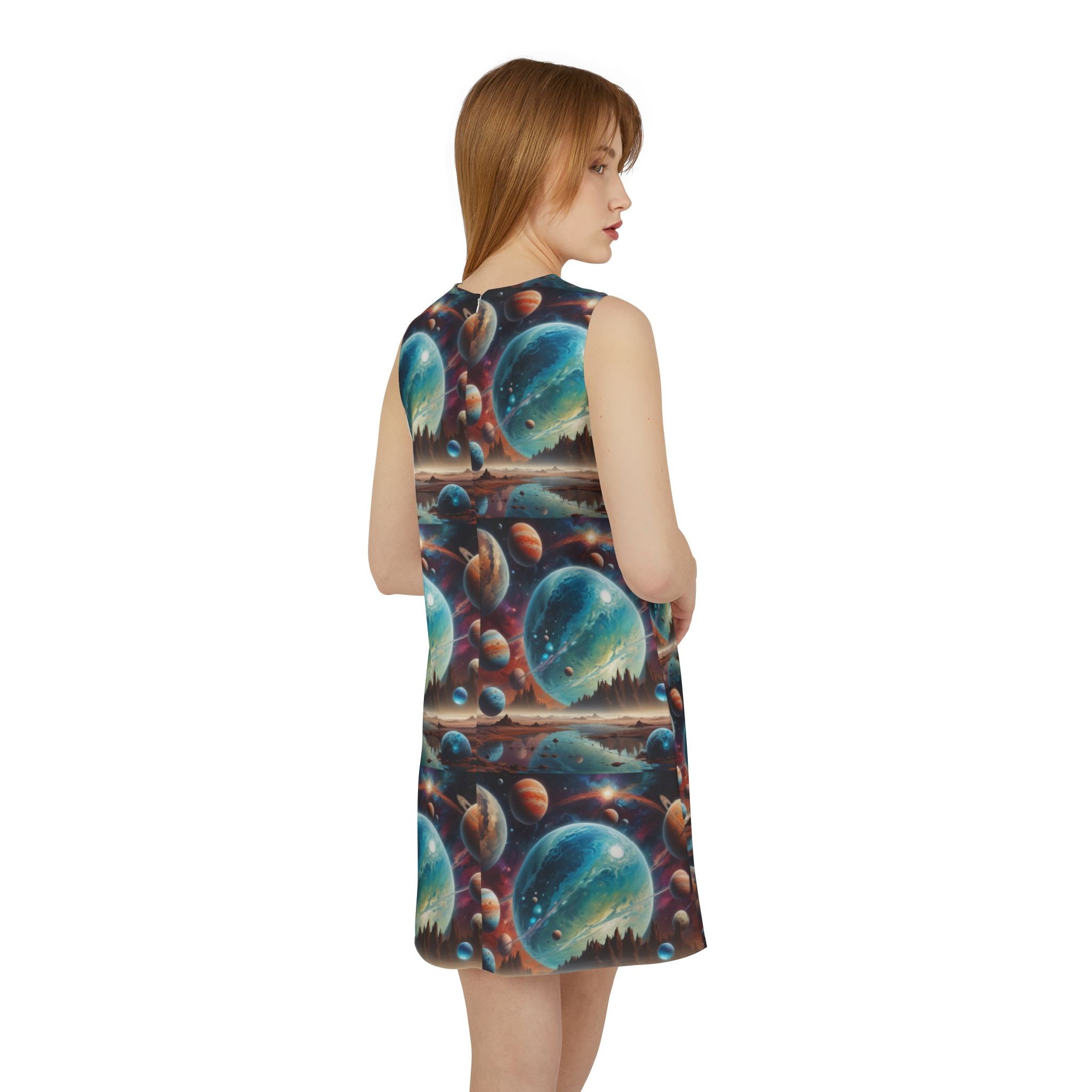 Discover the epitome of effortless elegance with our A-line Sleeveless Dress, a must-have Summer Dress that combines comfort and style in a perfect harmony. This Casual Midi Dress features a flattering A-line silhouette, designed to move with you from sunlit brunches to moonlit strolls. Crafted from a Lightweight fabric, it's an ideal Fashion Outfit for those warm, breezy days when you want to feel as light as your carefree spirit. The vibrant all-over print (AOP) lends a splash of personality, making this Women's Dress a delightful standout in your wardrobe. Whether you're dressing up for a garden gathering or simply enjoying a lazy Sunday downtown, this dress promises endless compliments. And if you're seeking the perfect Gift For Her, look no further—this dress roots itself in both timeless style and modern charm, making it an unforgettable choice. Effortlessly chic, this sleeveless dress boasts a jewel neckline and a flattering shift silhouette, ensuring timeless style and comfortable wear. Its eye-catching all over print design makes it a beautiful fashion statement suitable for any occasion. Runs true to size with its reliable fit, complemented by a hidden-back, 18'' zip for easy dressing. The zipper features YKK's invisible nylon upholstery design, complete with a non-separating, closed-end construction with an automatic lock slider in white, ensuring a seamless finish.