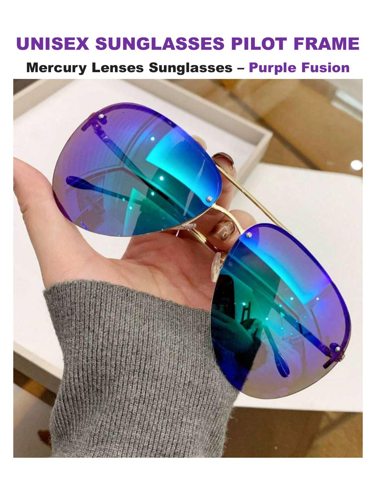 😎✨Mercury Aviator Sunglasses Rainbow Blue Silver Green Lenses Lightweight Stylish UV400