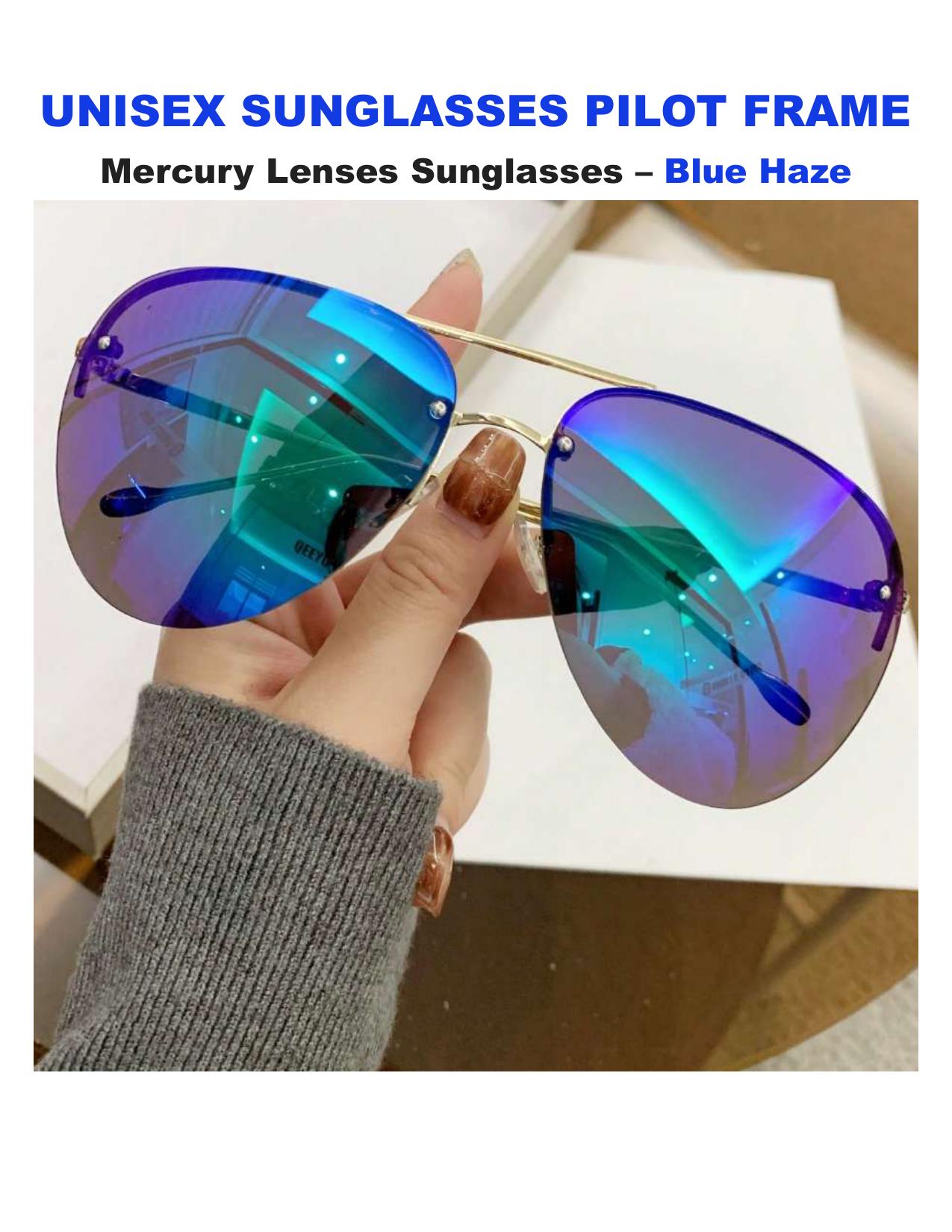 Mercury Aviator Sunglasses Rainbow Blue Silver Green Lenses Lightweight Stylish UV400