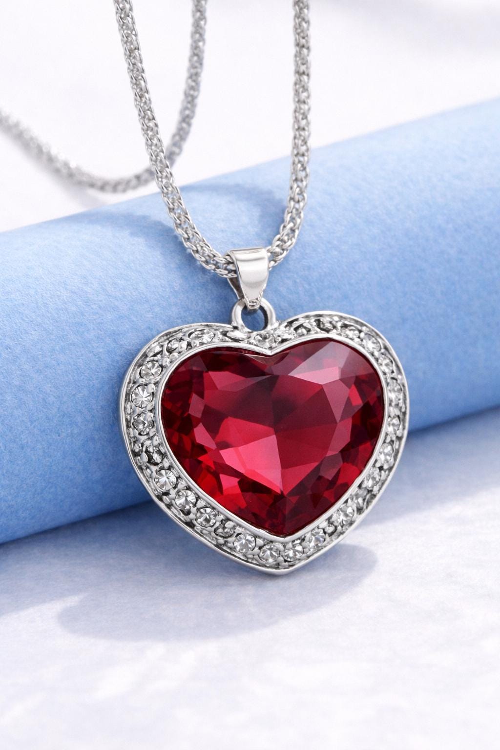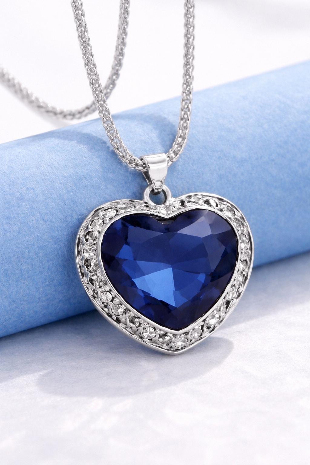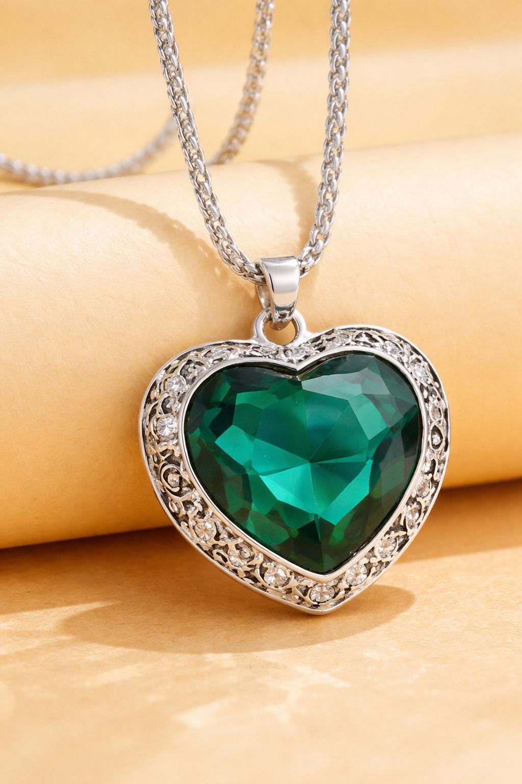 Retro Heart Pendant Necklace: Sapphire, Emerald, Ruby - Silver Overlay