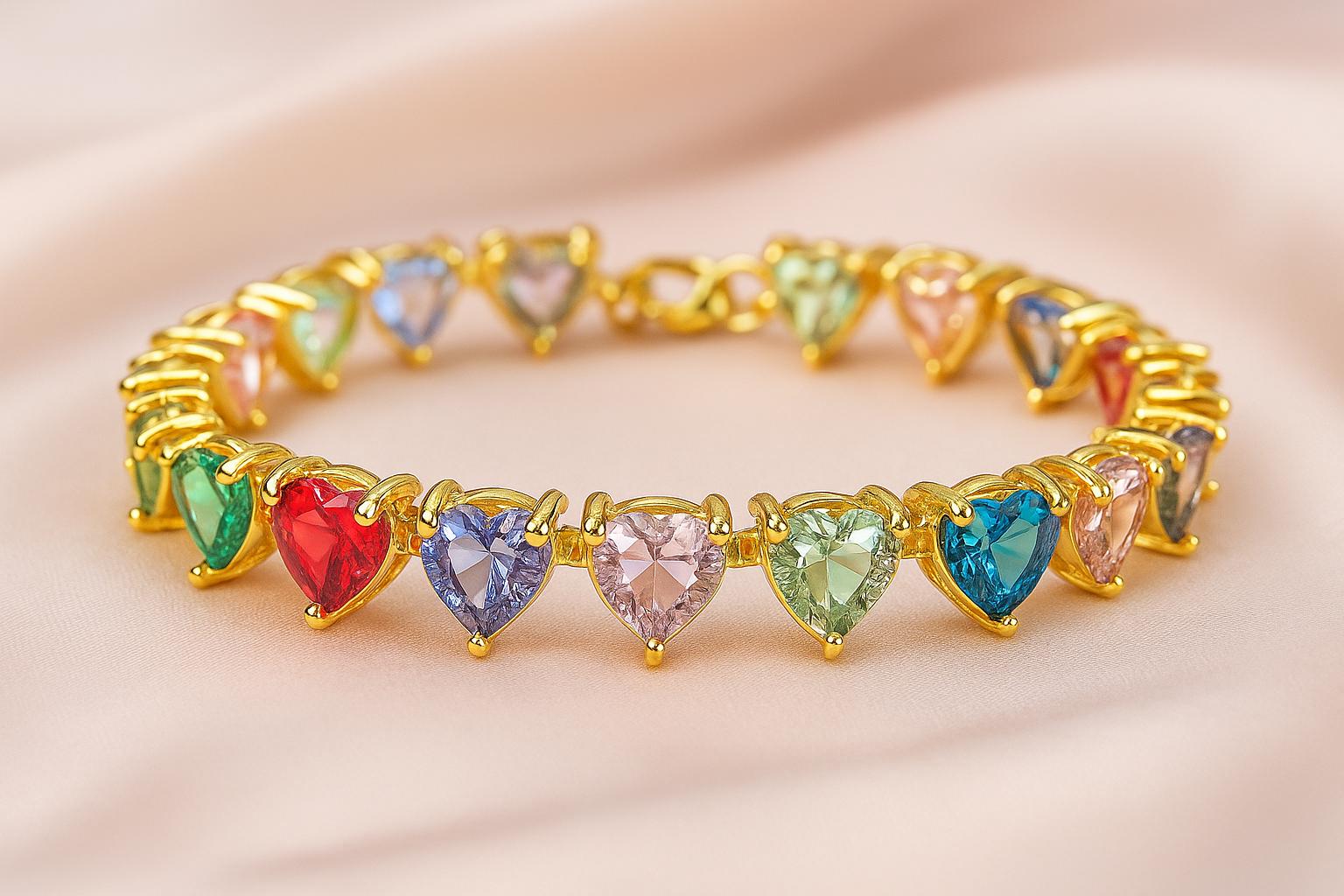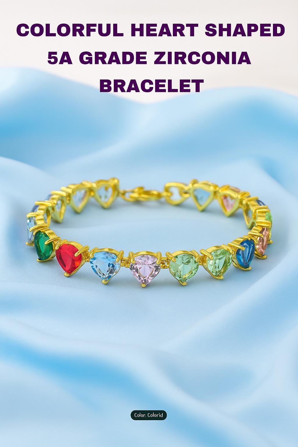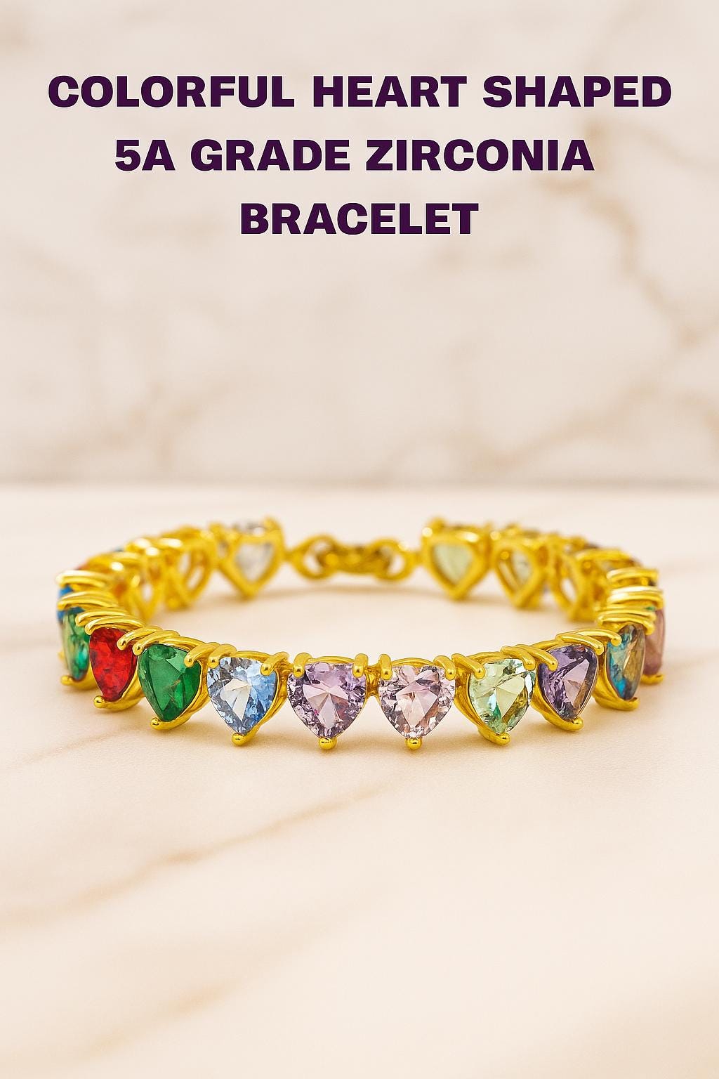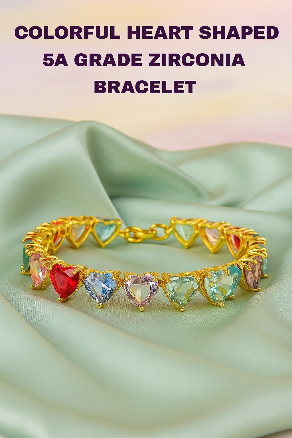 Radiate brilliance and timeless elegance with this Luxury Multi-Colored Heart Zirconia Bracelet, designed to capture hearts and light alike.