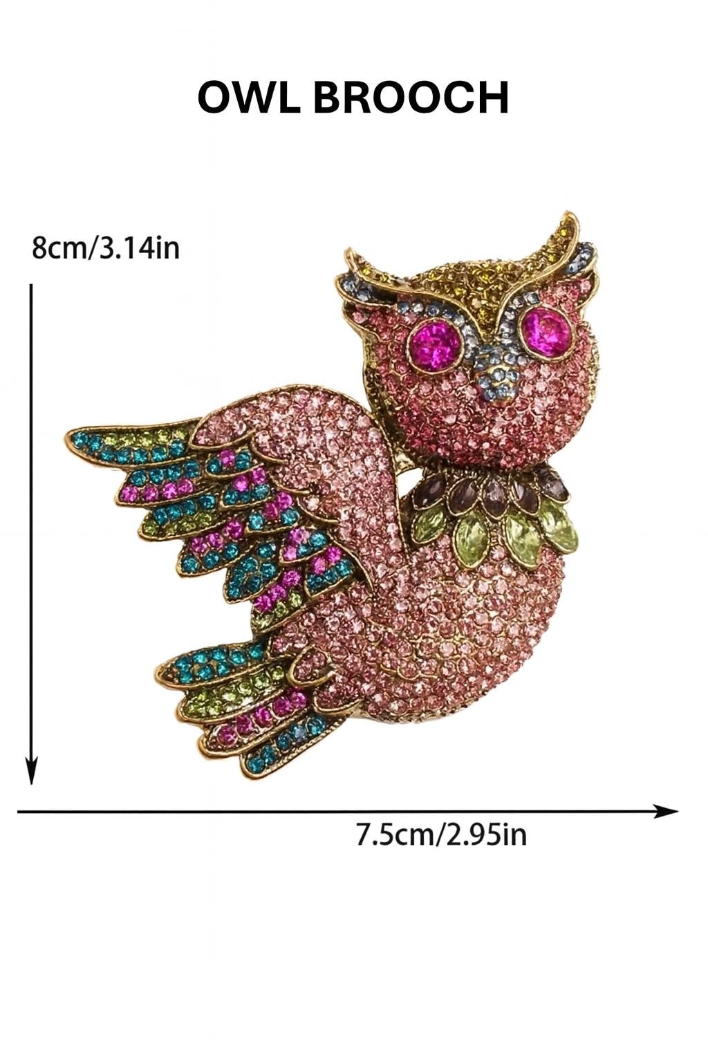 Sized at 3.14” H × 2.95” W, it’s the perfect accessory for jackets, scarves, hats, handbags, or even as a collectible jewelry piece. The vibrant jewel tones and detailed craftsmanship make it a standout gift for owl lovers, bird enthusiasts, and those who enjoy elegant animal jewelry.