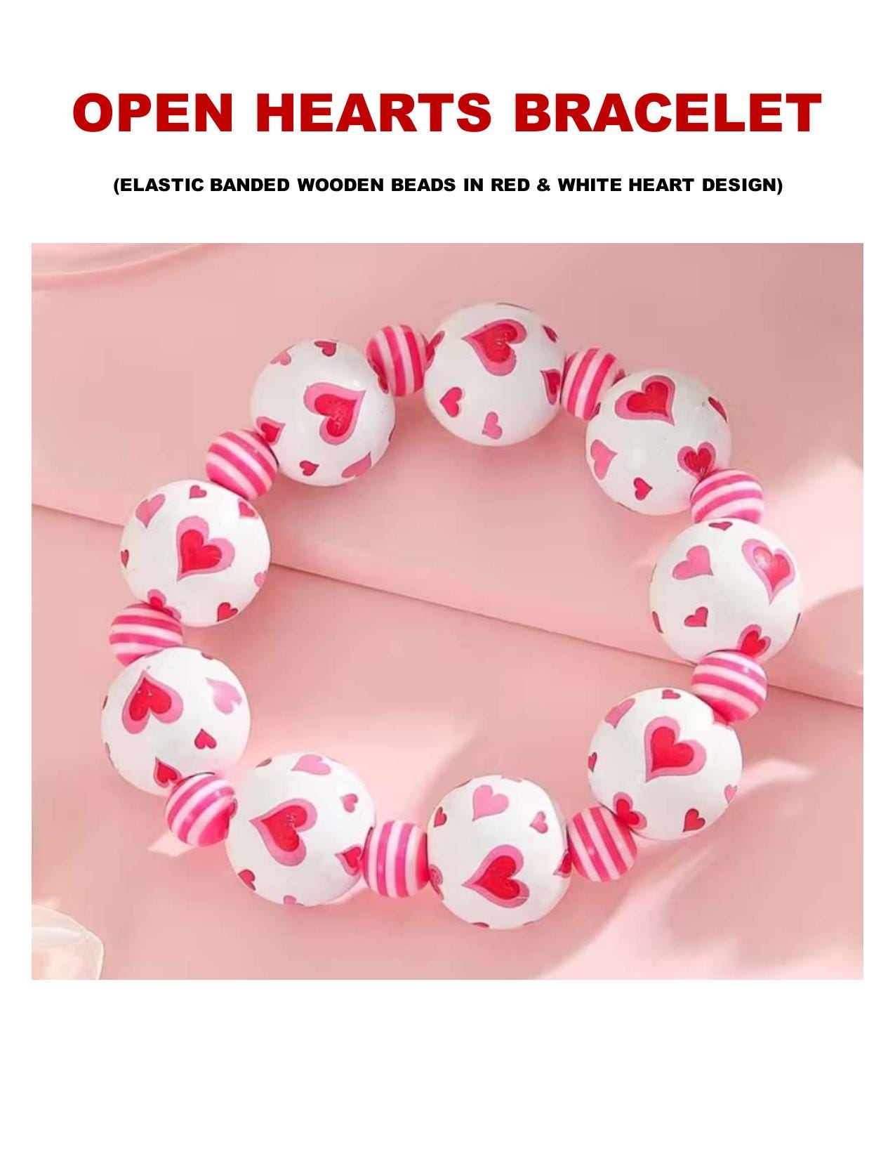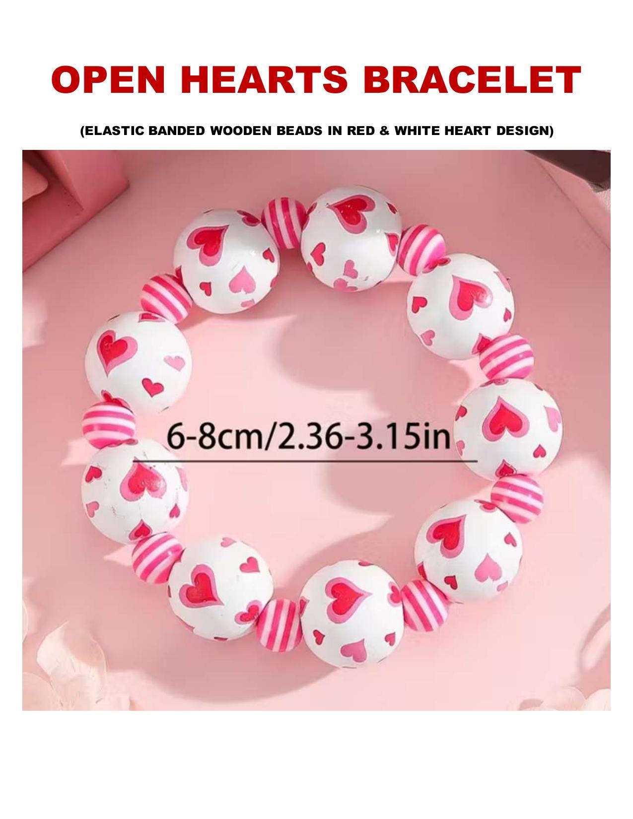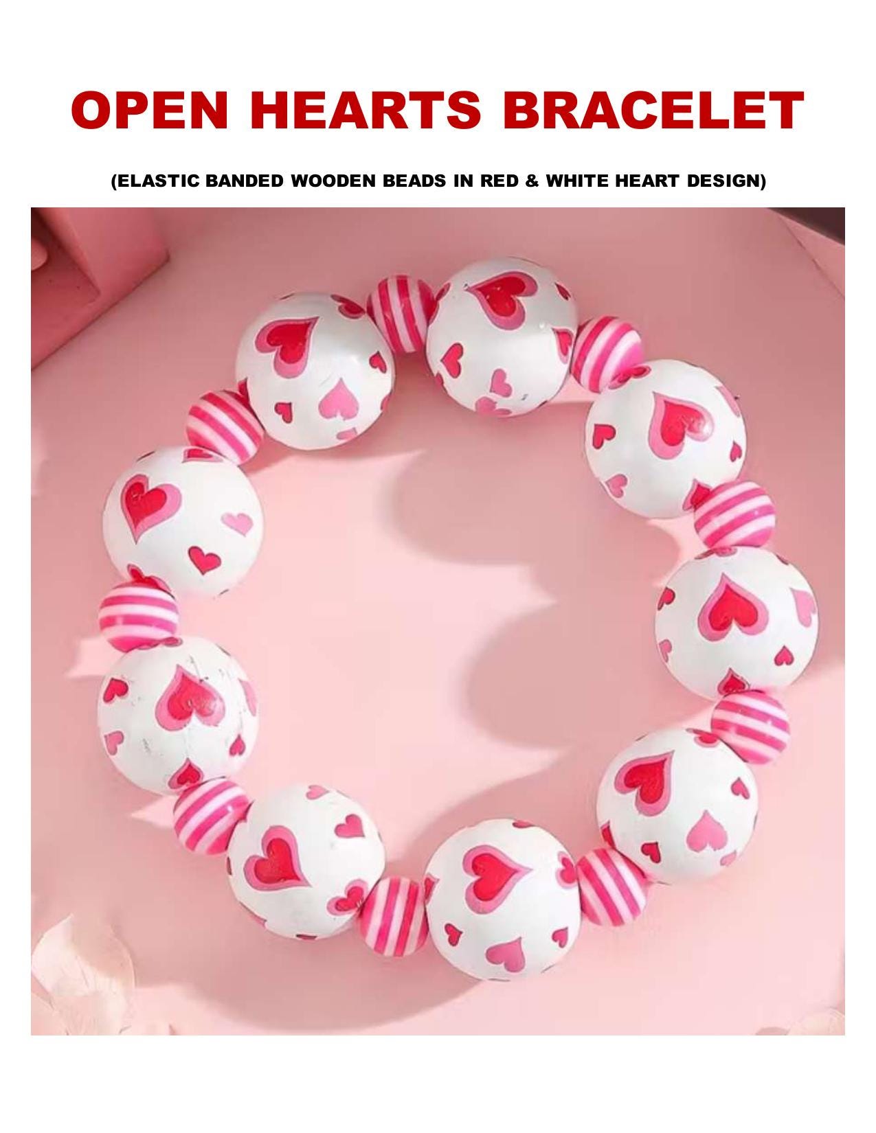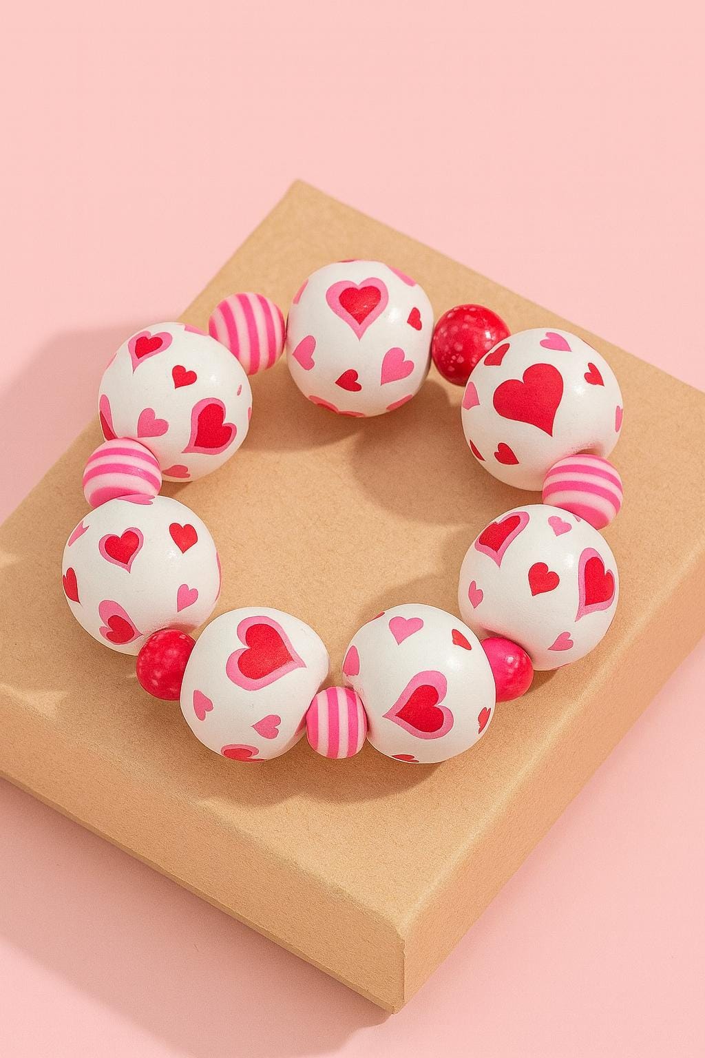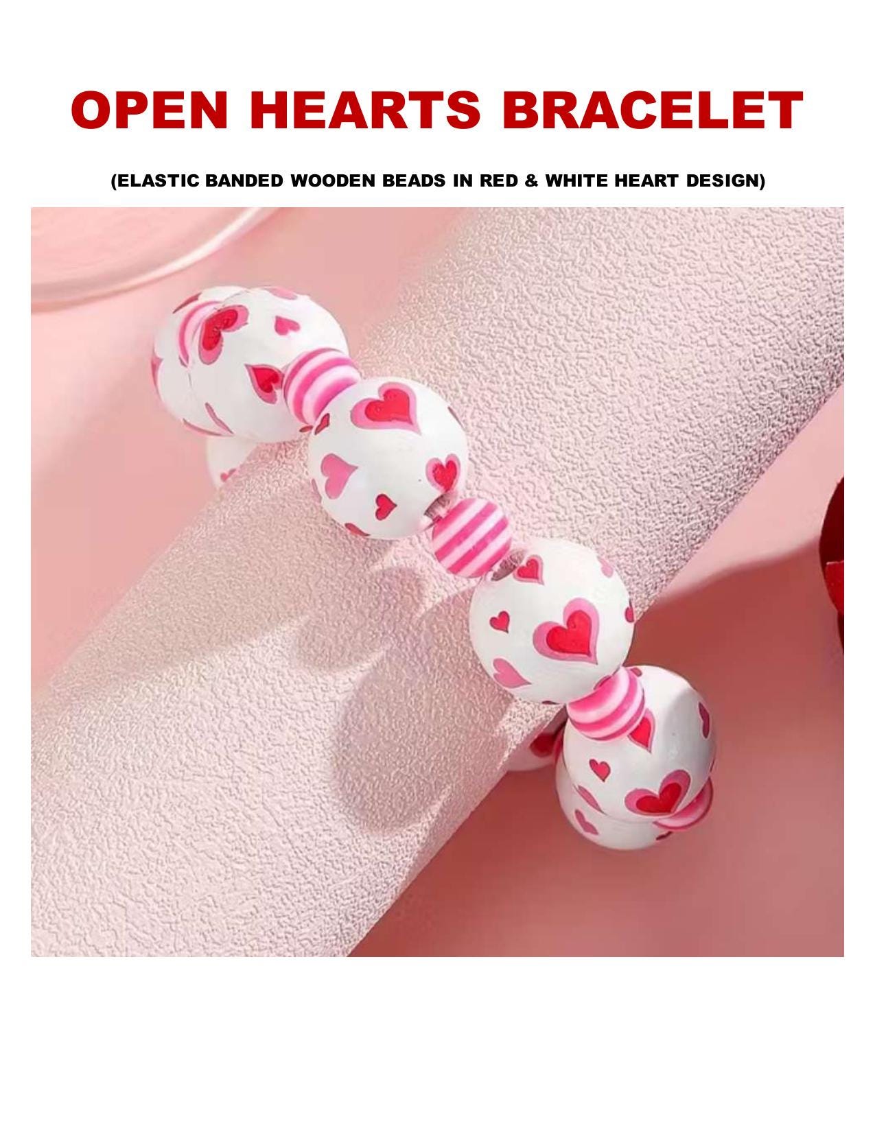 Each bracelet is crafted with care using elastic-banded wooden beads featuring red and pink heart designs that radiate warmth and positivity. The smooth, polished beads and flexible stretch fit make it both comfortable and stylish for all-day wear.