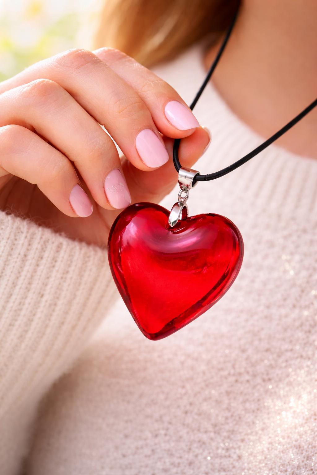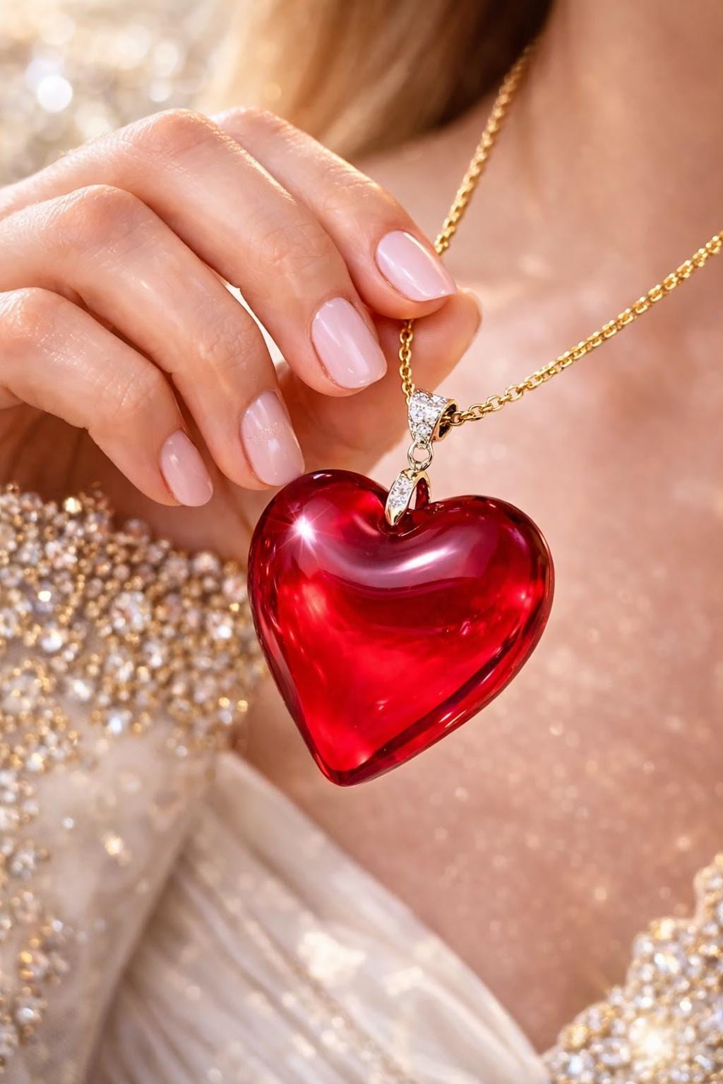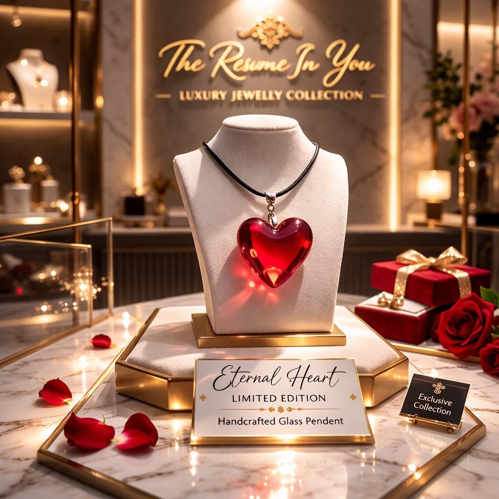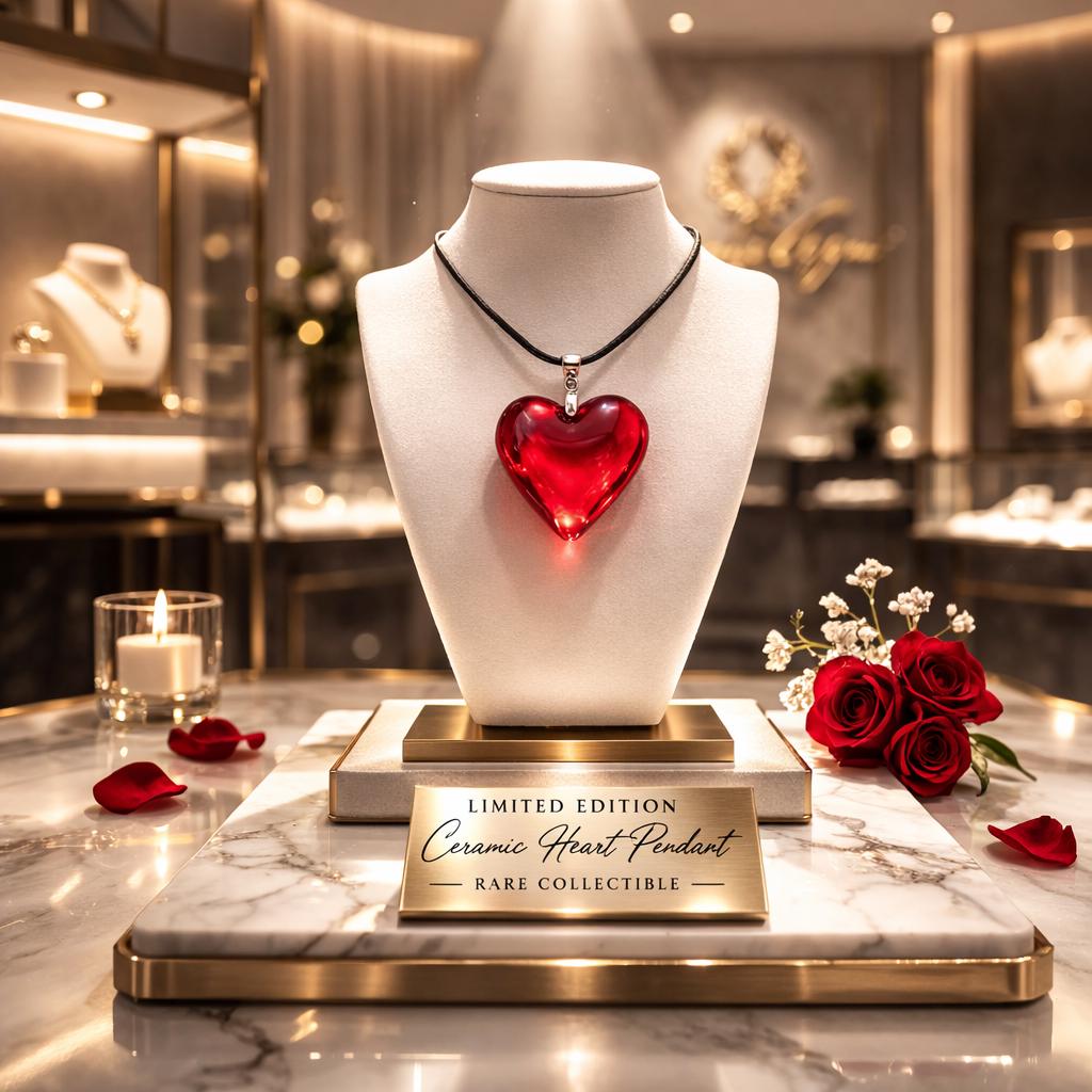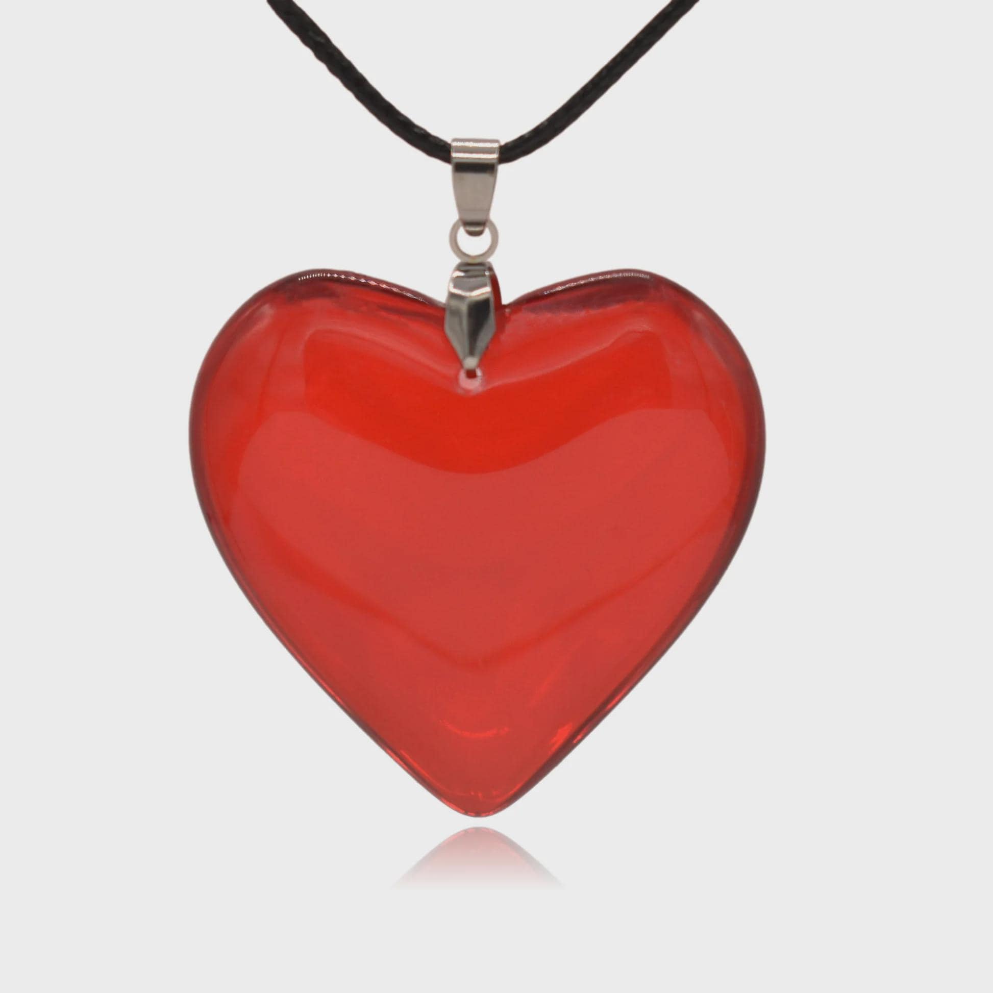 Luxury Limited Edition Red Heart Pendant Necklace – Glass Heart Statement Jewelry – Romantic Gift