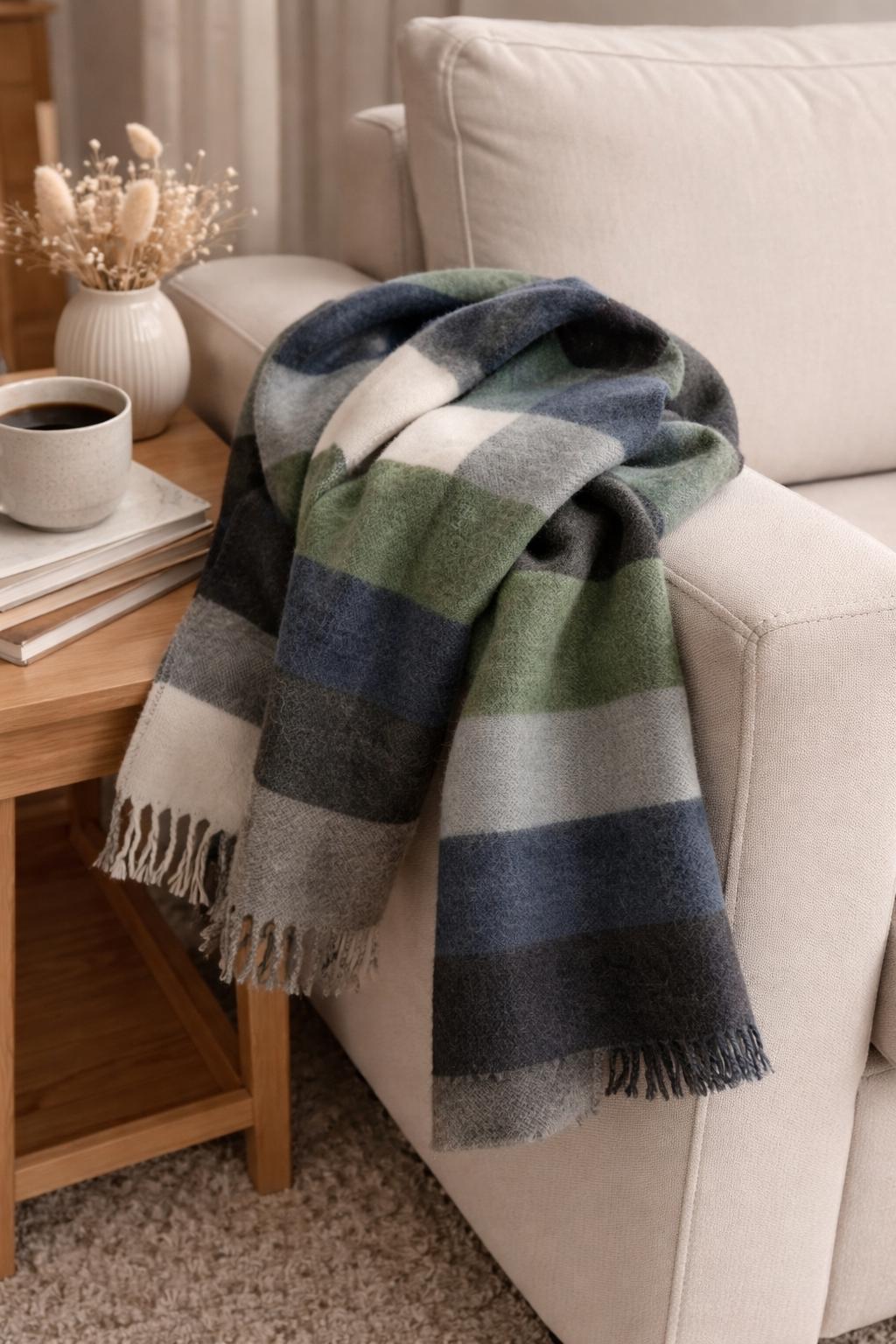 Limited Edition - Green Blue Plaid Blanket Scarf – Soft Brushed Buffalo Check Wrap
