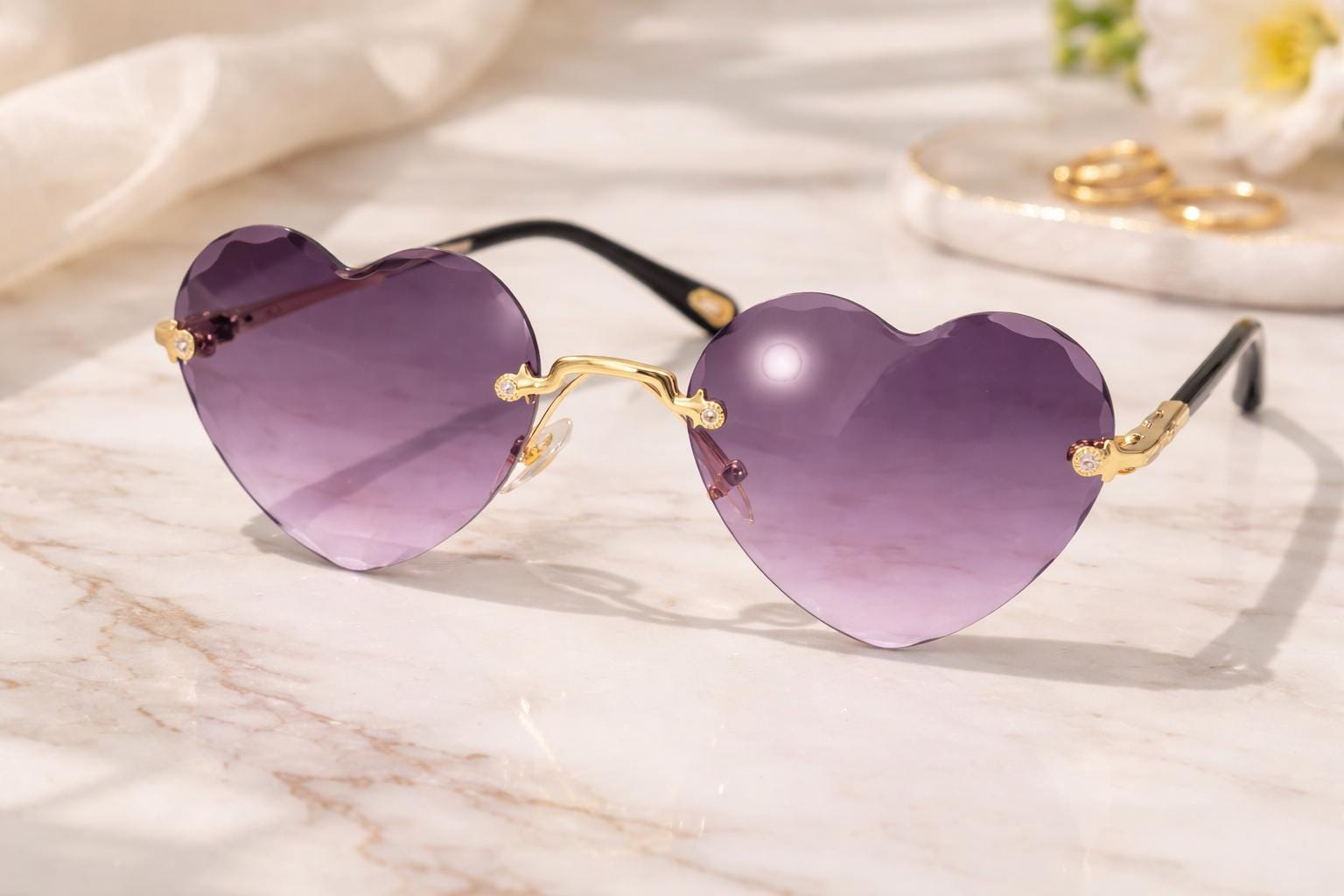 iHeart Sunglasses: Golden Frame - Limited Edition Purple Lenses - Two Styles